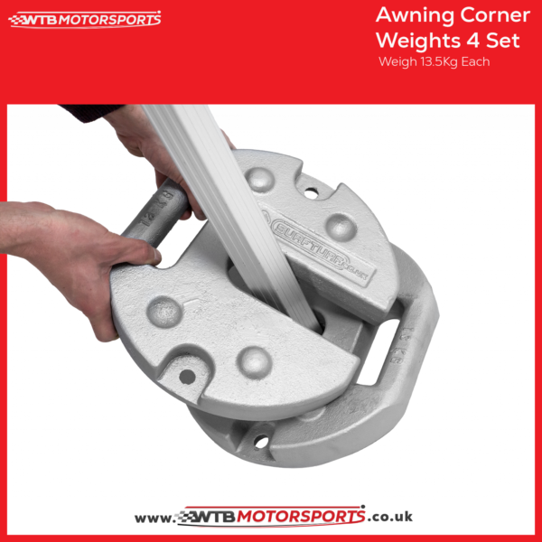 These weights may be expensive however they are a case of fit and forget. No worrying about your awning taking off in the middle of the night and either smashing up your or someone else’s very expensive race car!