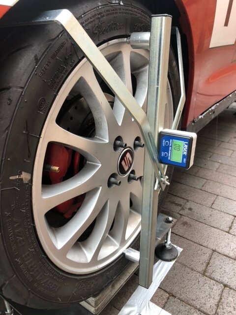 We use this exact camber gauge for our setups. Its magnetic attachment makes it perfect to put on the wheel attachment camber frame not included.